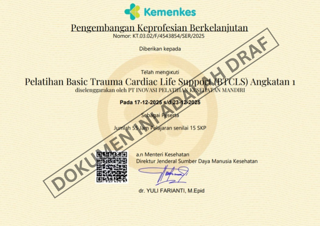 Contoh Sertifikat Peserta dari Kementerian Kesehatan