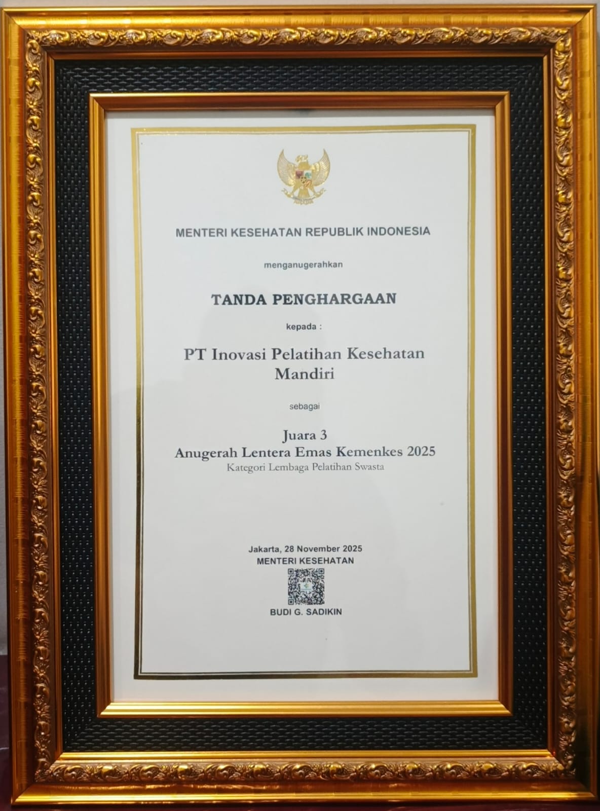 Dokumentasi penghargaan PT IPKM sebagai bukti komitmen terhadap mutu layanan dan pencapaian yang telah diraih.
